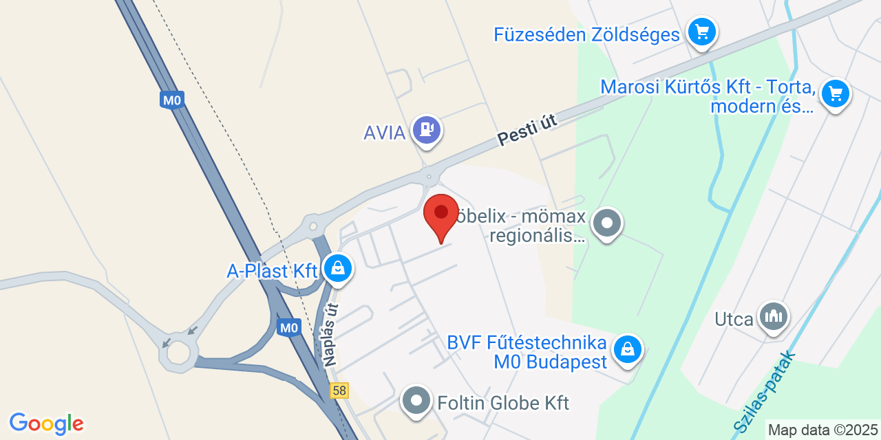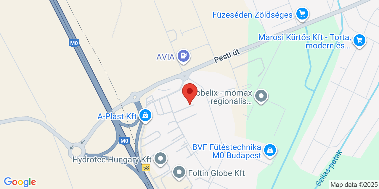 M0-s autóút, 58-as kijárat Nagytarcsa felé, benzinkutas körforgalom első kihajtó, első lehetőségnél balra (Szilas utca). Szintén balra kell behajtani a kék és a piros csarnokok között az udvarba. Műhelyünk bal oldalt a kék utcafrontú épület utolsó előtti csarnokrészében, a sorompó előtti részen található.